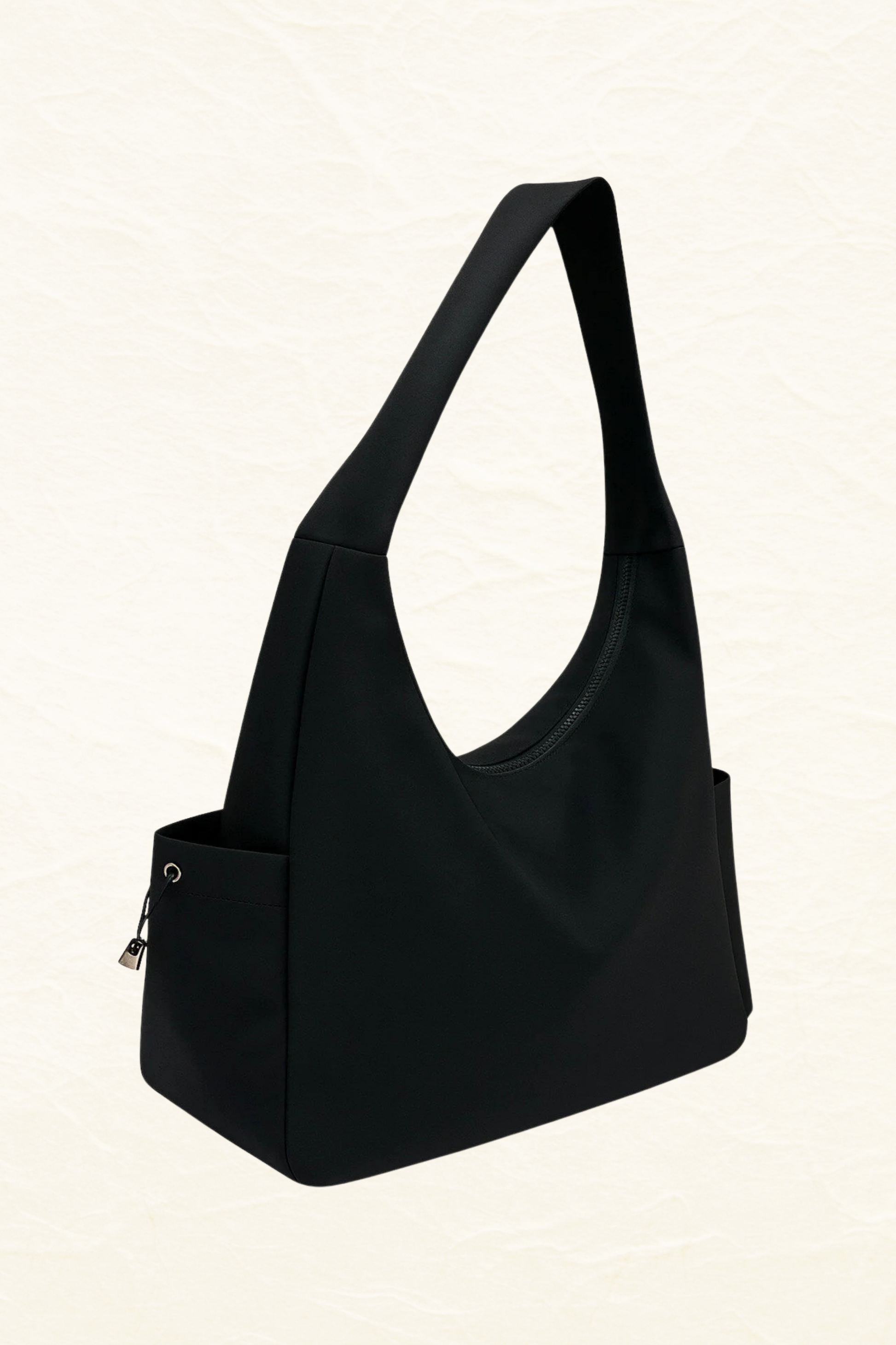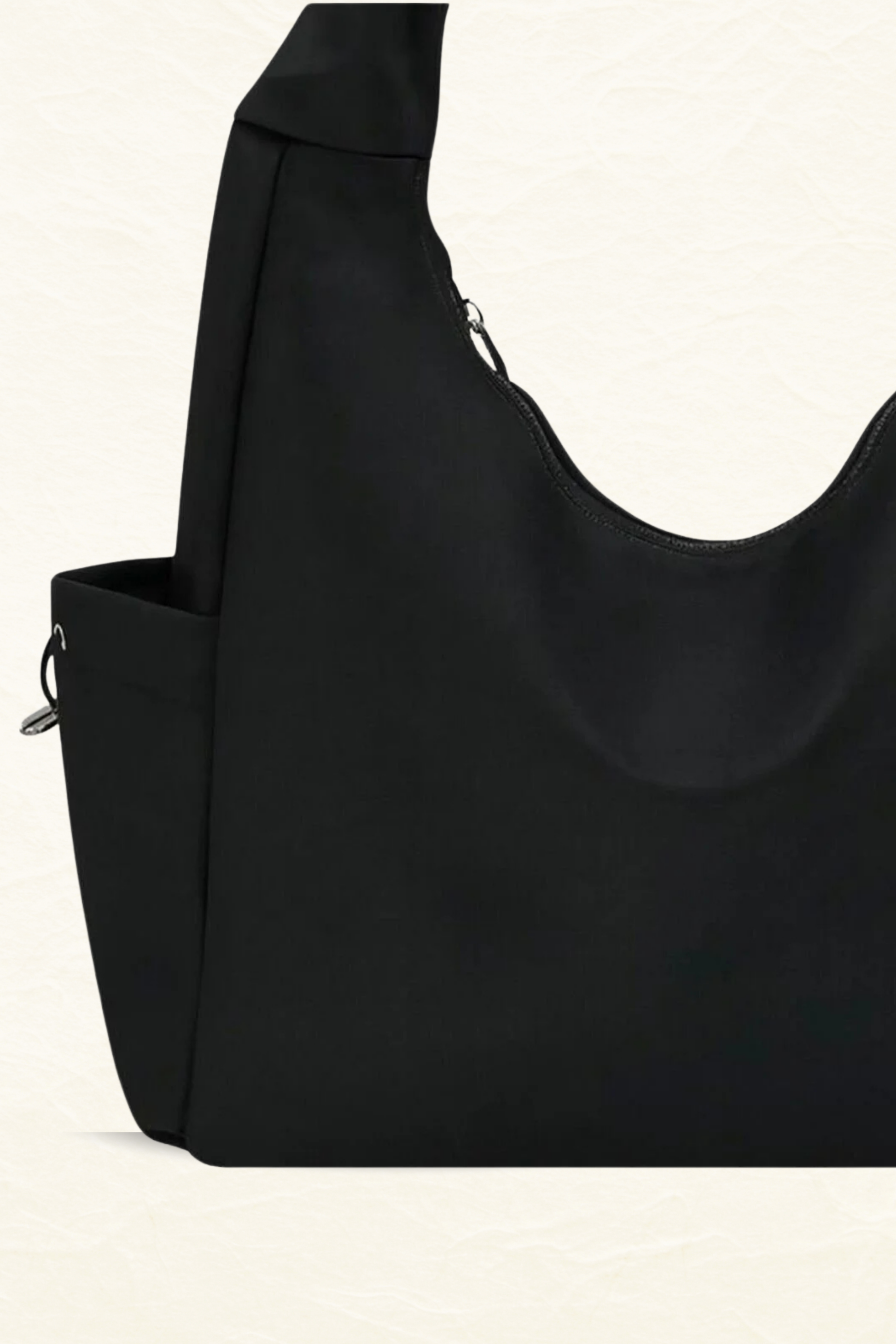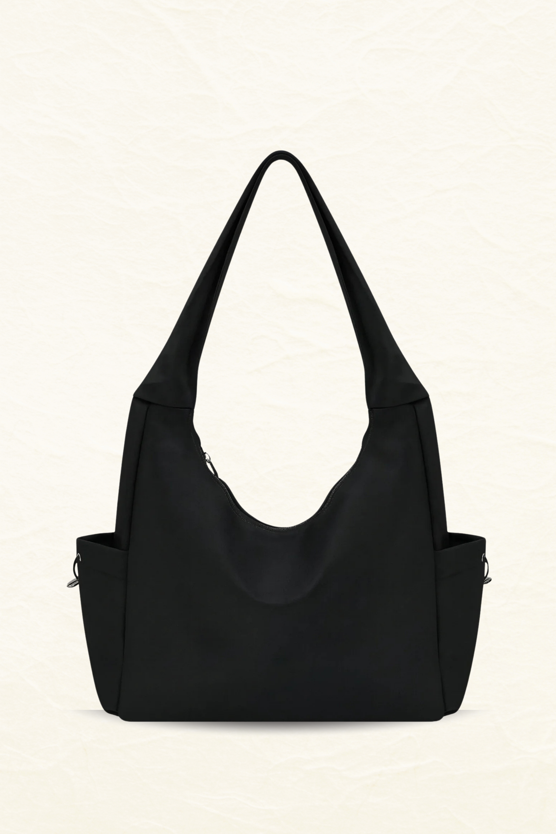 Siyah Spor Hobo Omuz Çantası – Büyük Boy, Fermuarlı, Yan Cepli