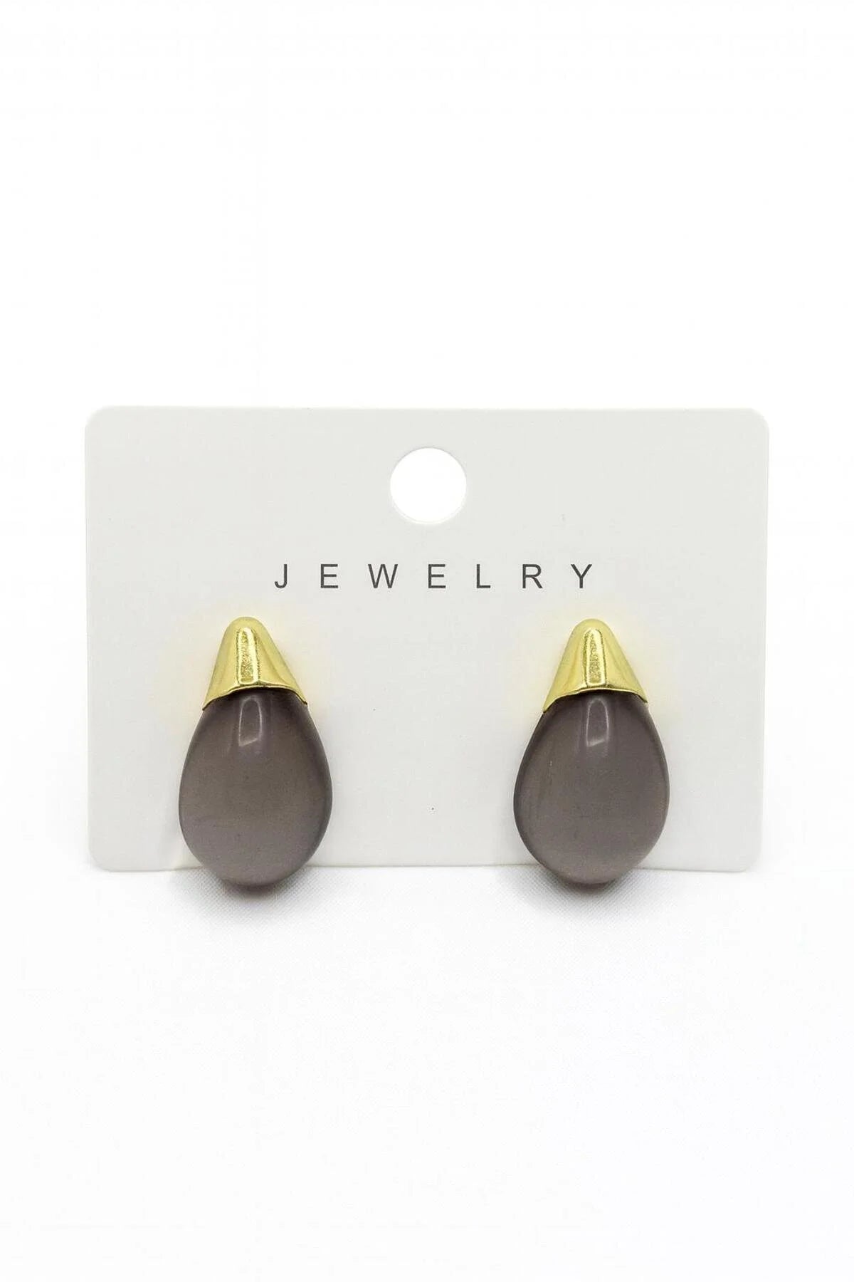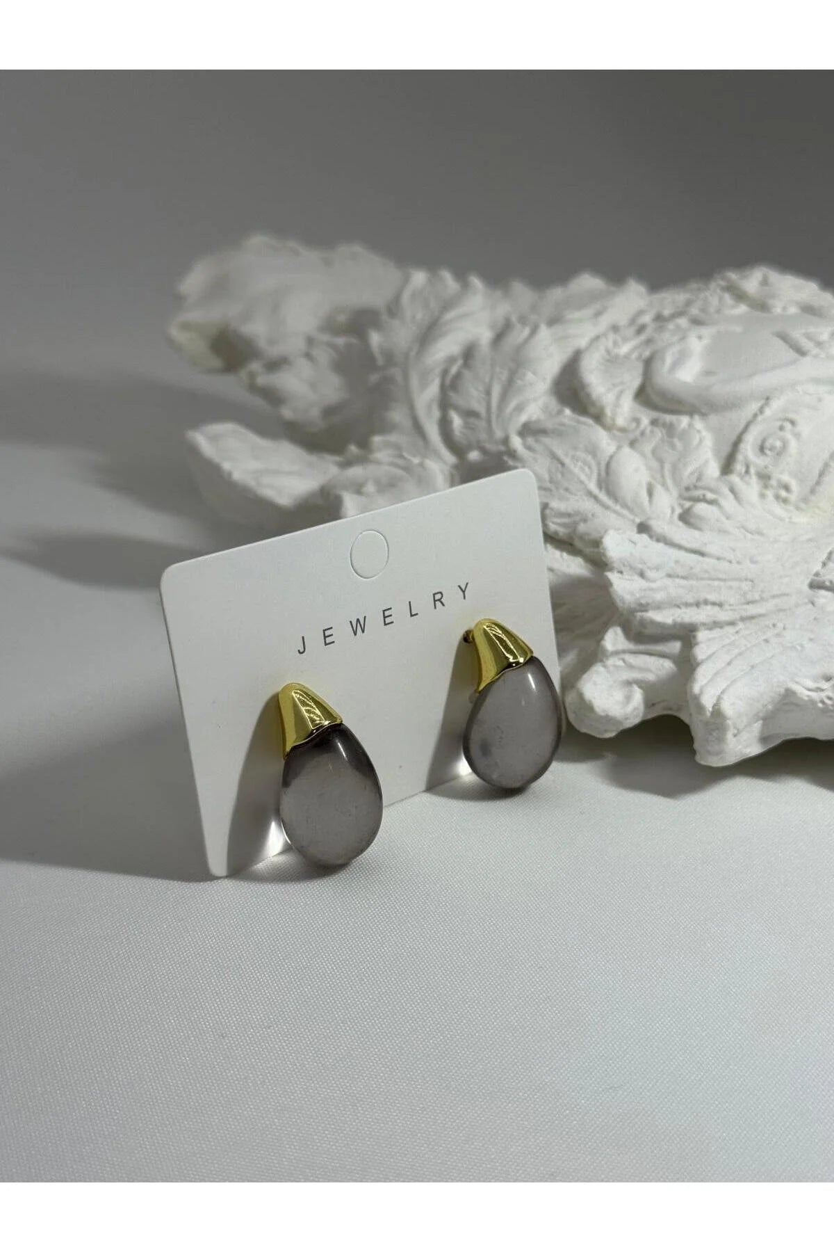 Gri Damla Küpe – Gold Detaylı Modern Tasarım