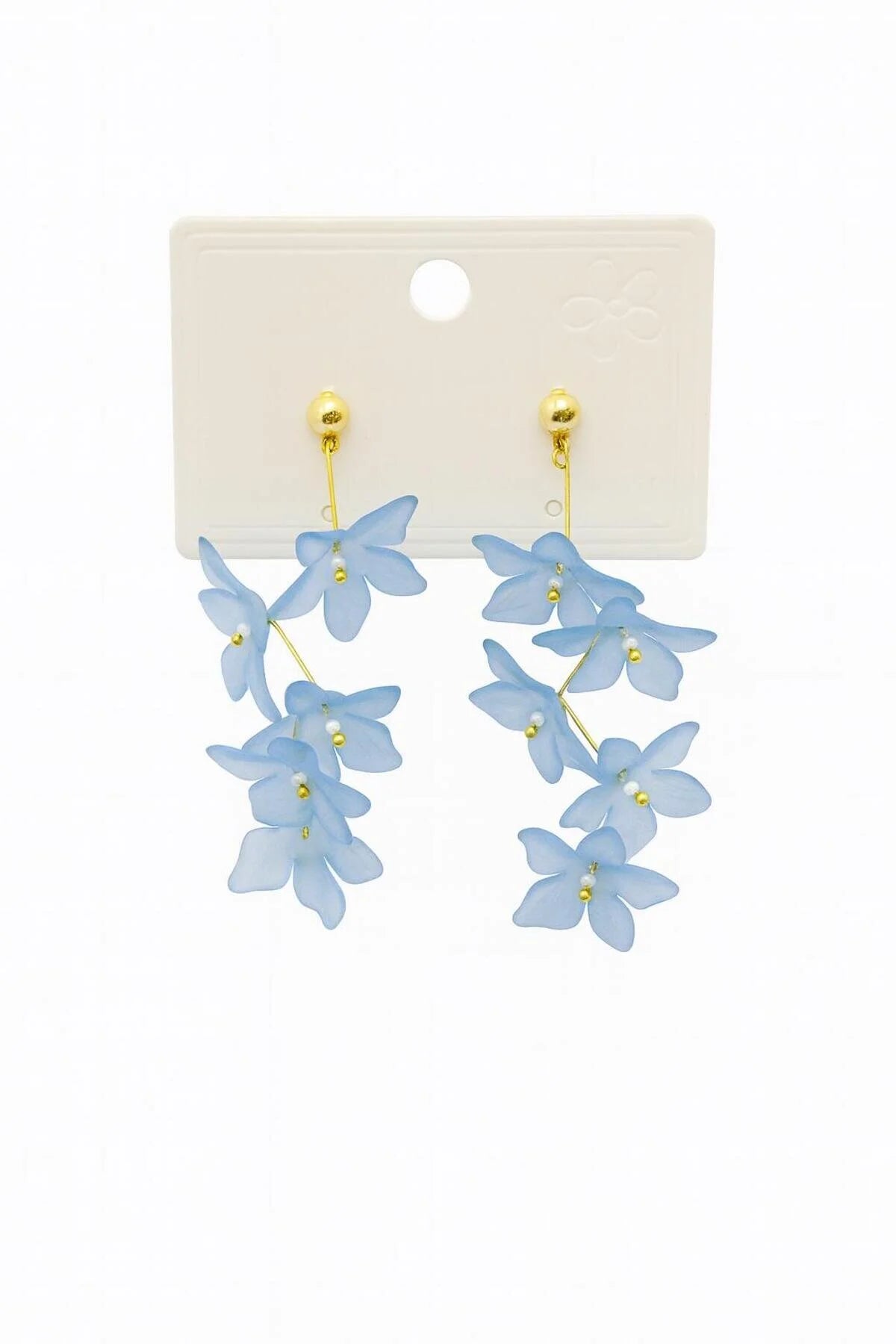 Mavi Çiçek Sallantılı Küpe – Gold Detaylı Zarif Tasarım