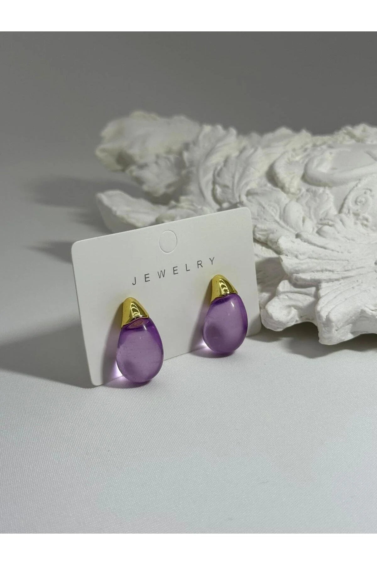 Mor Damla Küpe – Gold Detaylı Sofistike Tasarım