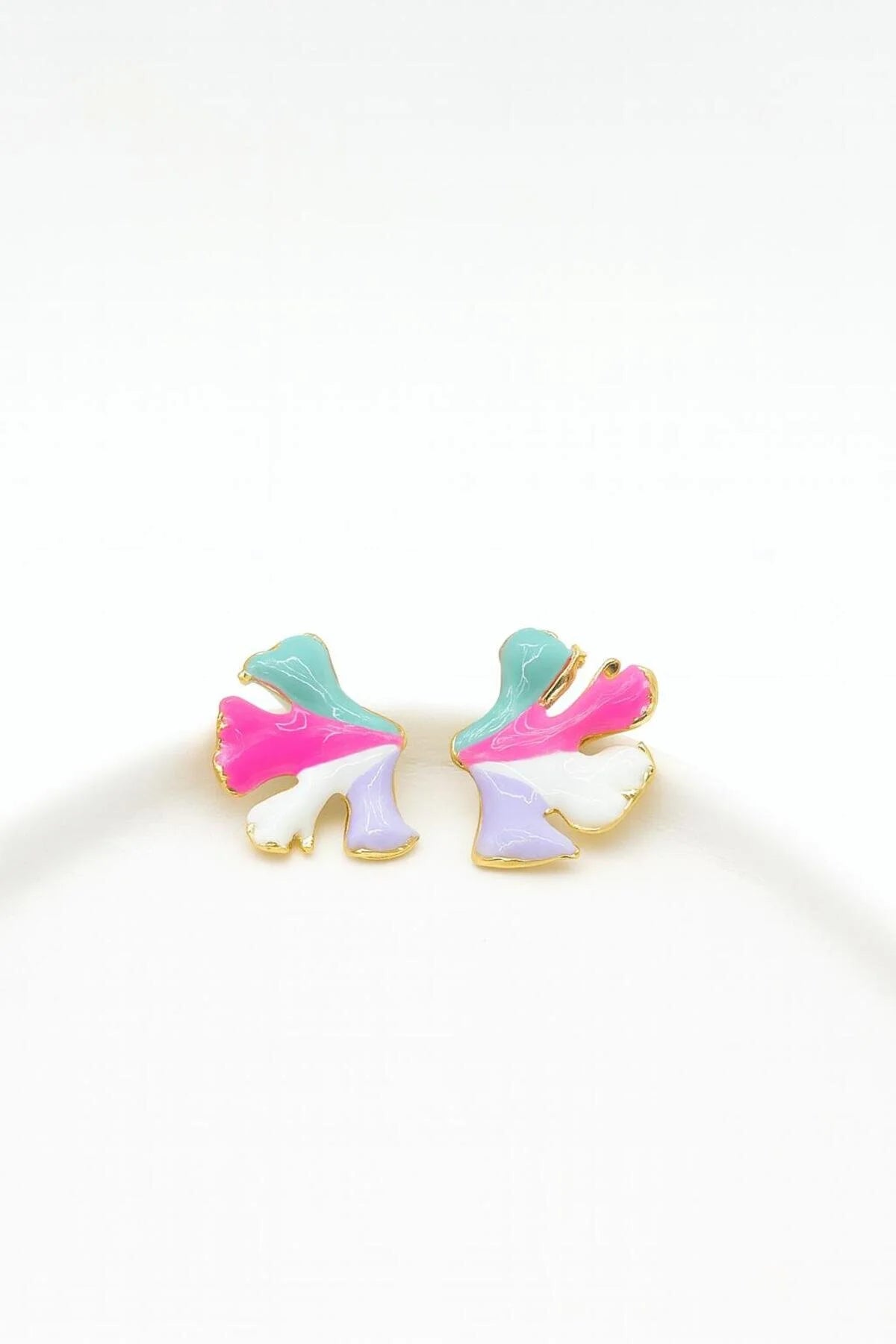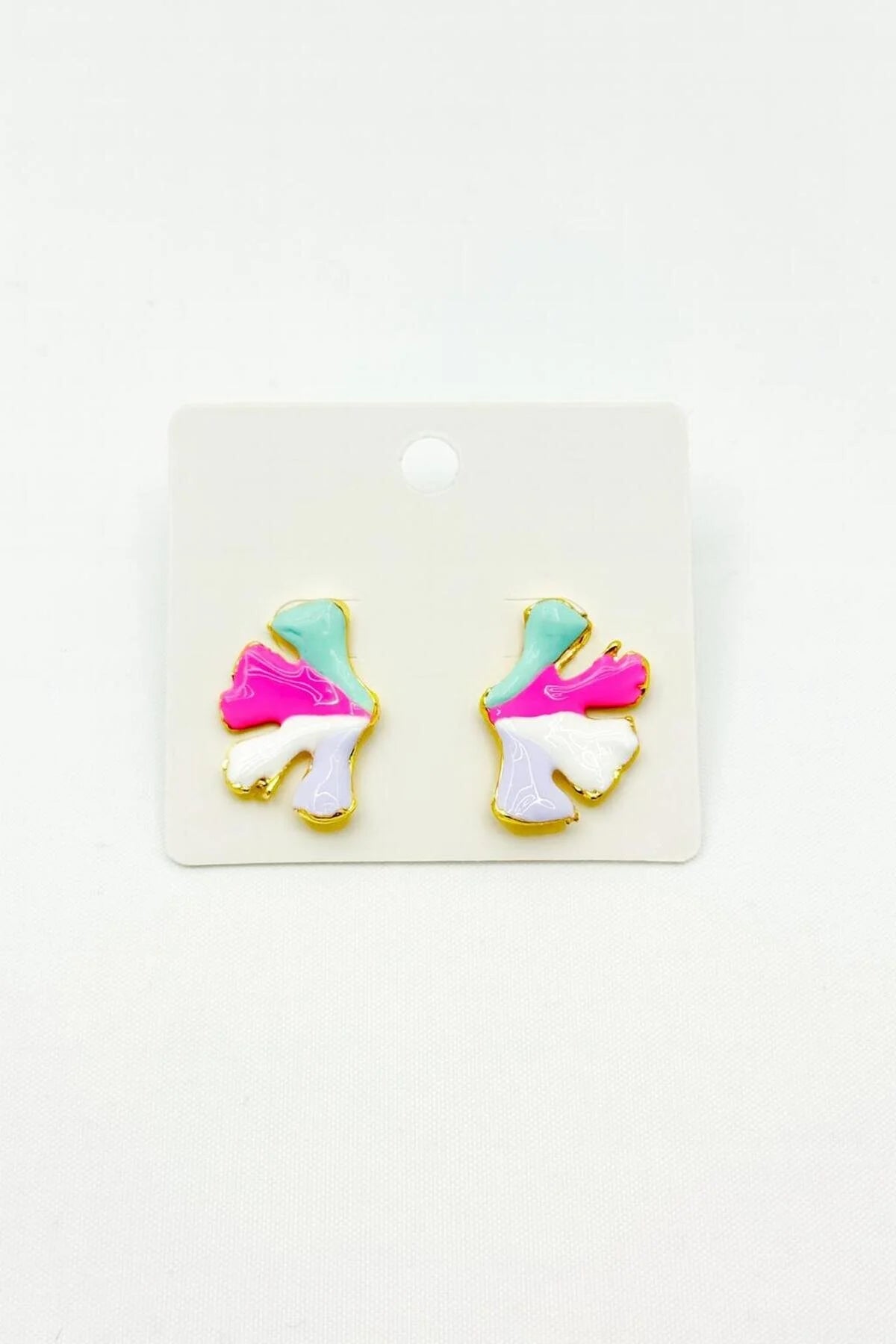 Renkli Mineli Gold Detaylı Küpe – Modern Abstrakt Tasarım